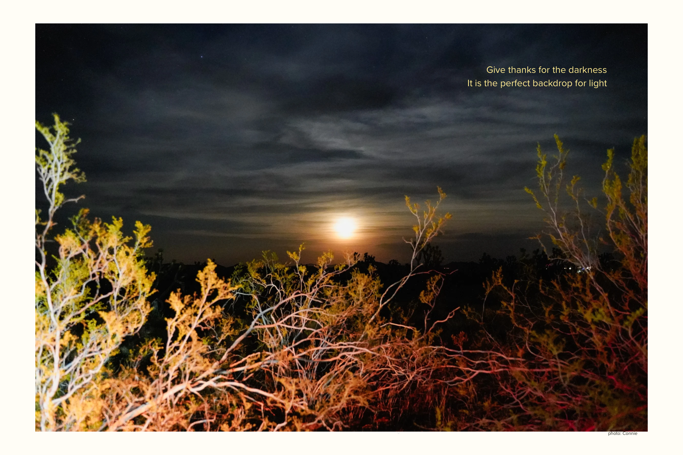 Join us for the opening reception of For Scale (Vogue and Connie Ann go outside), an exhibition that celebrates curiosity, exploration, and getting out of the indoor comfort zone and out into the vast and spectacular natural world. Poet Vogue M. Robinson and photographer Connie Ann (aka Conomatic) embarked on a journey through Avi Kwa Ame National Monument and other sites in Southern Nevada, taking walks through the wilderness while contemplating the relative and changing nature of size and relationships. Along the way, they found awe in the vast and ancient presence of Joshua Trees, the small perfections of a gall midge’s nest, and every miracle of nature in between. Their experiences inspired them to adopt new perspectives that consider friendships, emotions, and the interconnectedness of the landscape as markers for its context and scale.